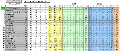 Finalment trobem en els llocs de descens, el Llove que ha baixat 8 llocs i té la meitat de punts que l’any passat amb 1 partit més, i el Saturnino que l’any passat anava 3er , però ha perdut els 5 partits per la mínima i per tant no es representatiu l’últim lloc que ocupa en l’actualitat.
